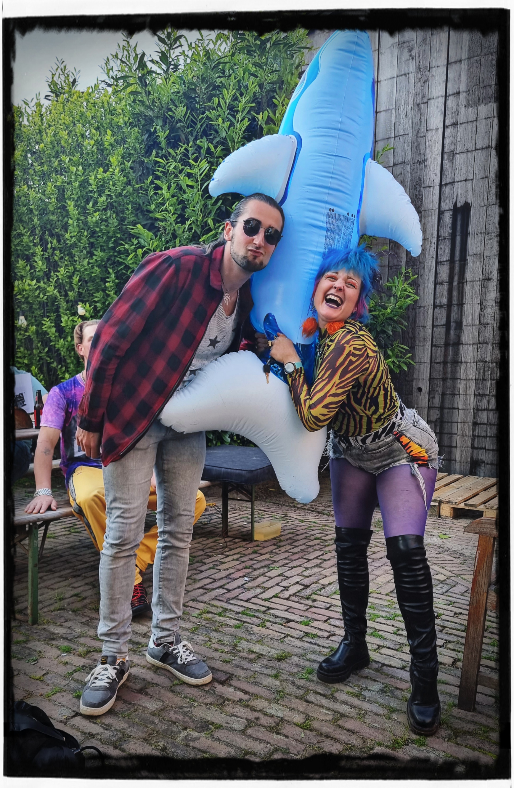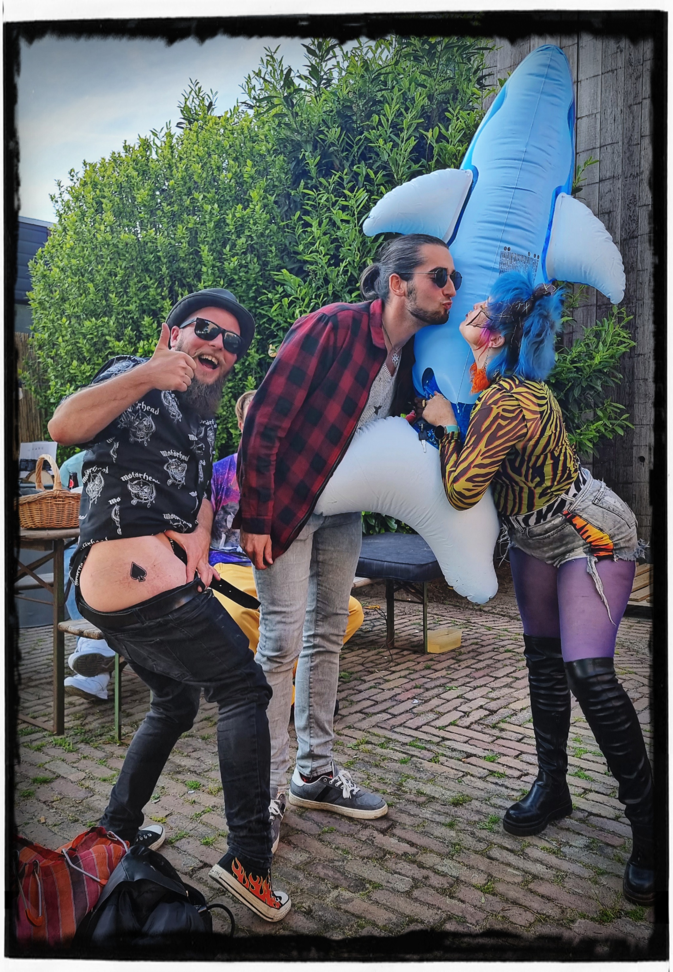 Marcel kwam de dolfijn tegen waar we elkaar mee ontmoet hebben en Peter en Jesse kwamen even hun nieuwe tattoo laten zienš