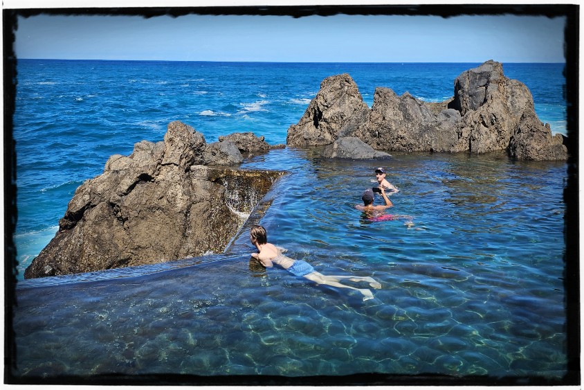 Today was the last full day in Madeira. We went on a jeep tour but it was actually pretty stupid. We mainly passed viewpoints and at each point we only stayed very briefly and we heard that we would only stay at the Fanal Forest for 20 minutes as we had booked the whole jeep tour for that forest. So we decided to get out at the forest and continue to see how we could get back on our own. But in this post, we’ll get to the points before we got to the forest. Especially the volcanic baths were really beautiful. And we also drove through the mud for a while, which was also very nice