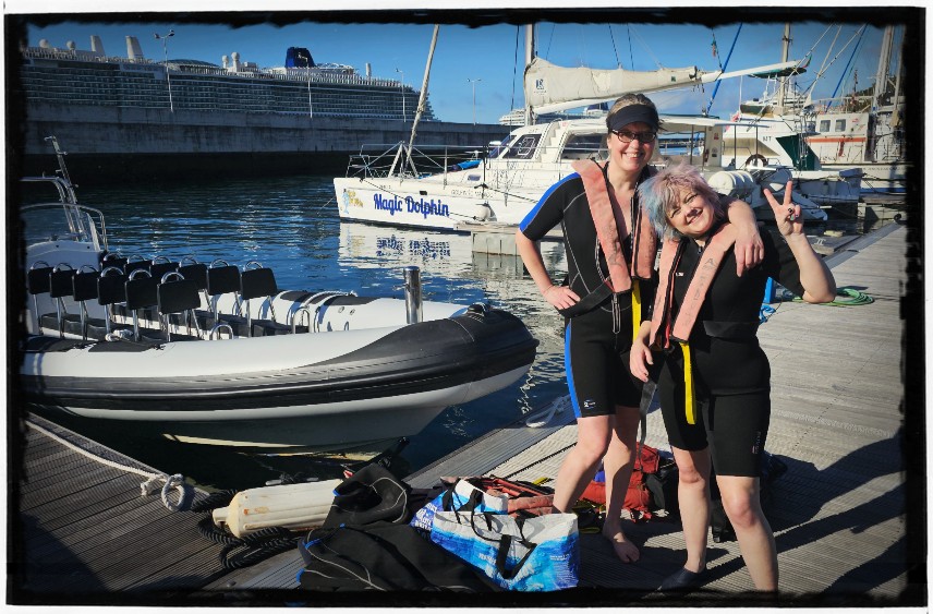 Today we went by boat to spot wild dolphins. It was really great again! In the end we just couldn’t get back into the water, because there were suddenly Portuguese warships everywhere. They are very poisonous!