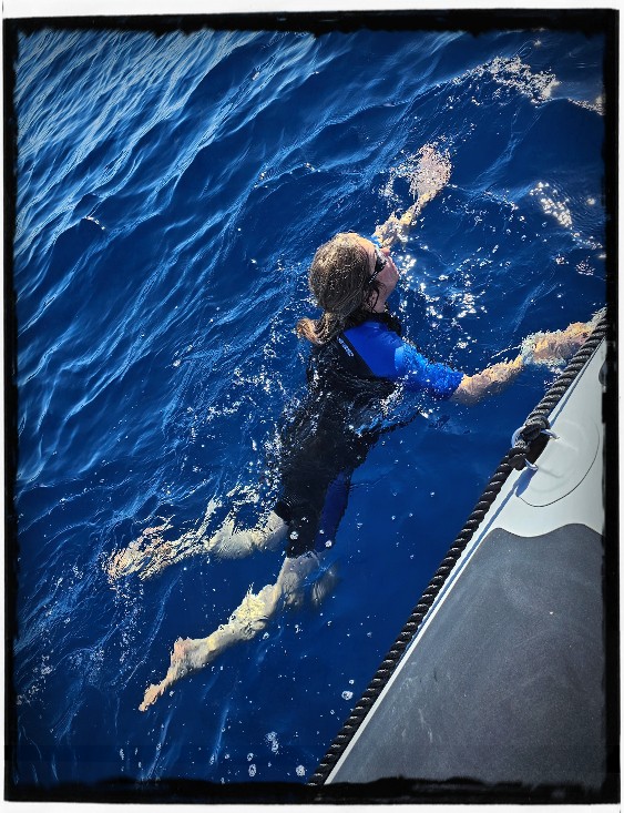 Vandaag zijn we met de boot meegegaan om wilde dolfijnen te spotten. Was echt ook weer zo geweldig! Op het laatst konden we alleen niet het water weer in, want er waren ineens overal Portugese oorlogschepen. Die zijn heel giftig!