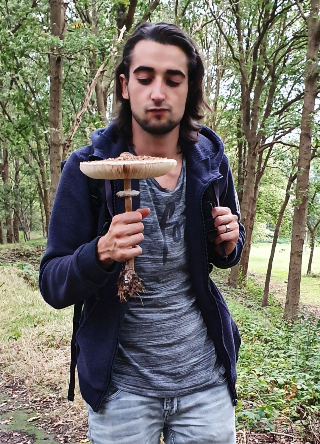 Mijn vriend heeft echt een hele grote paddestoel gevonden. En het is eekhoorntjesbrood dus eetbaar:)