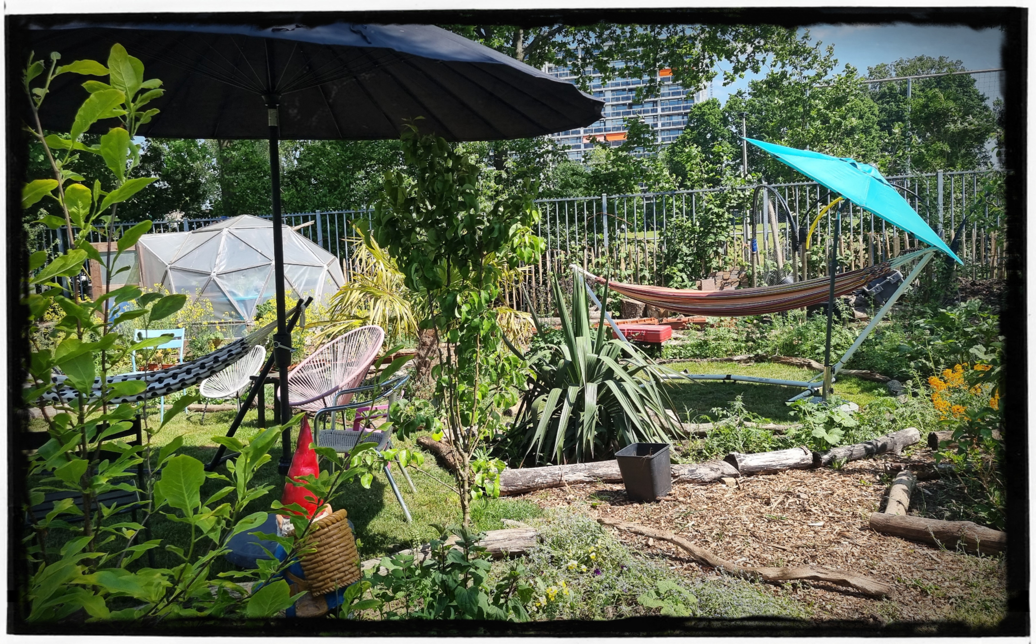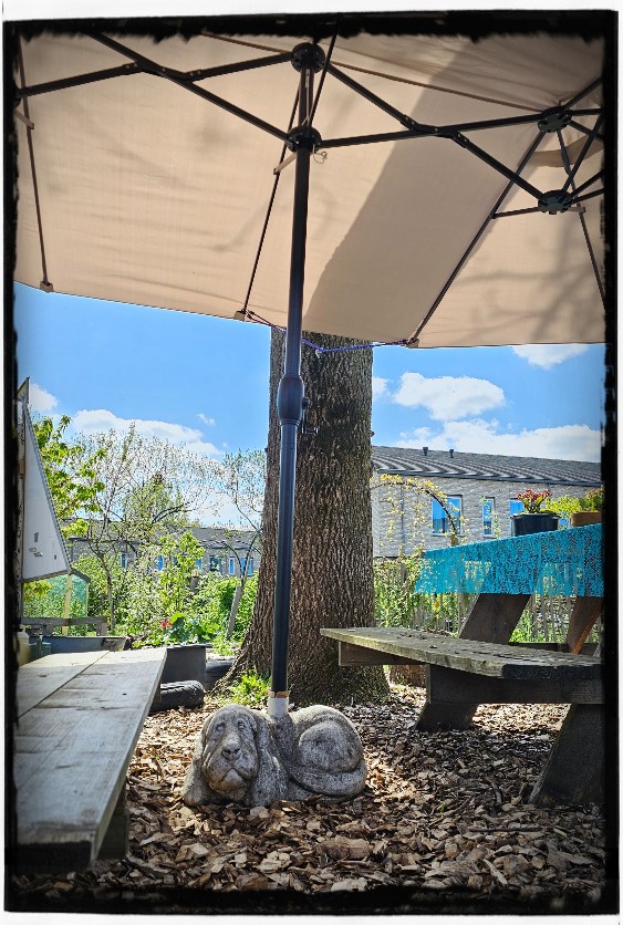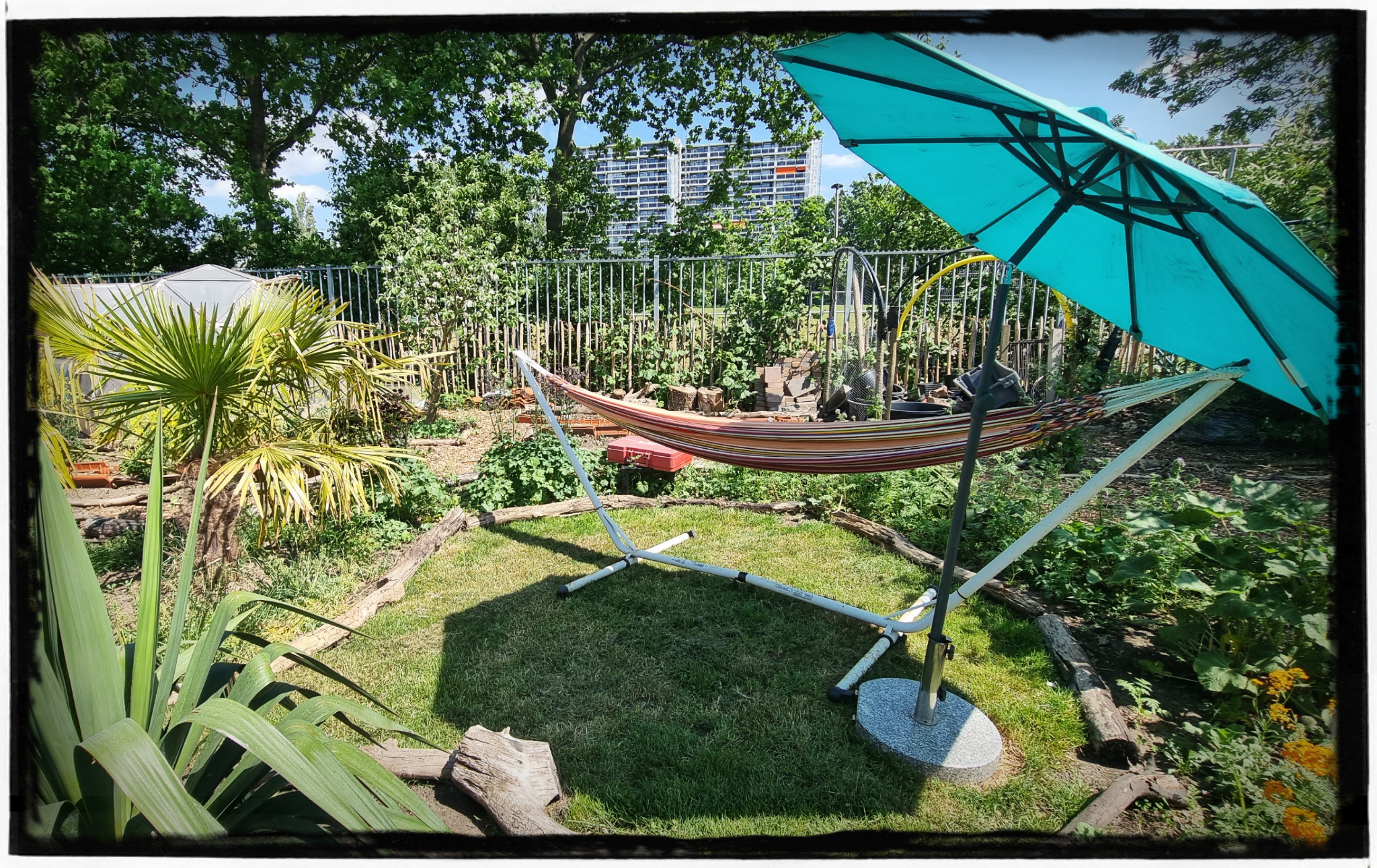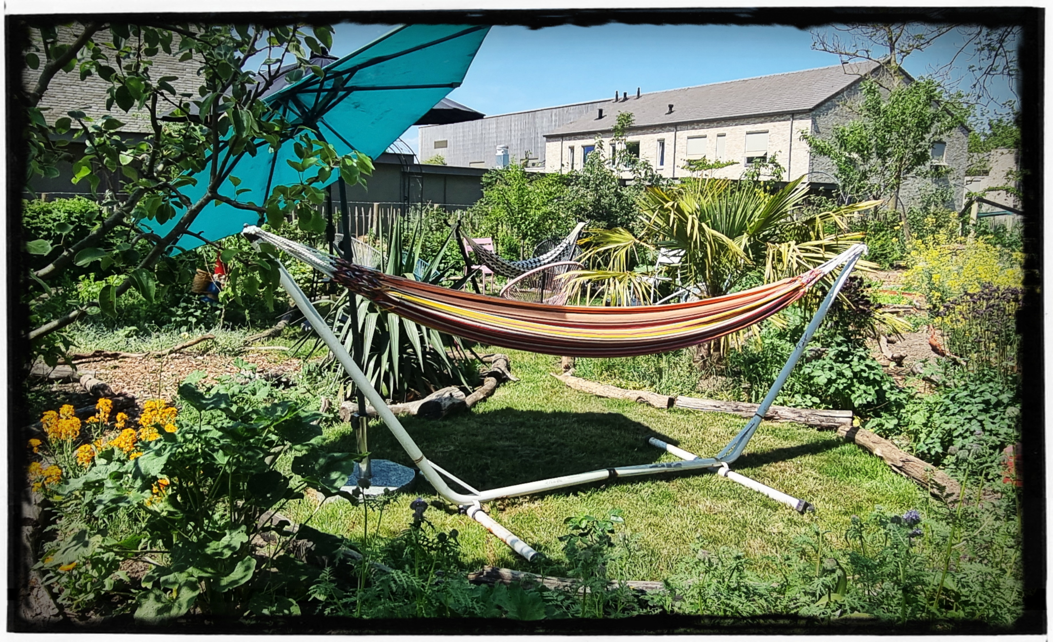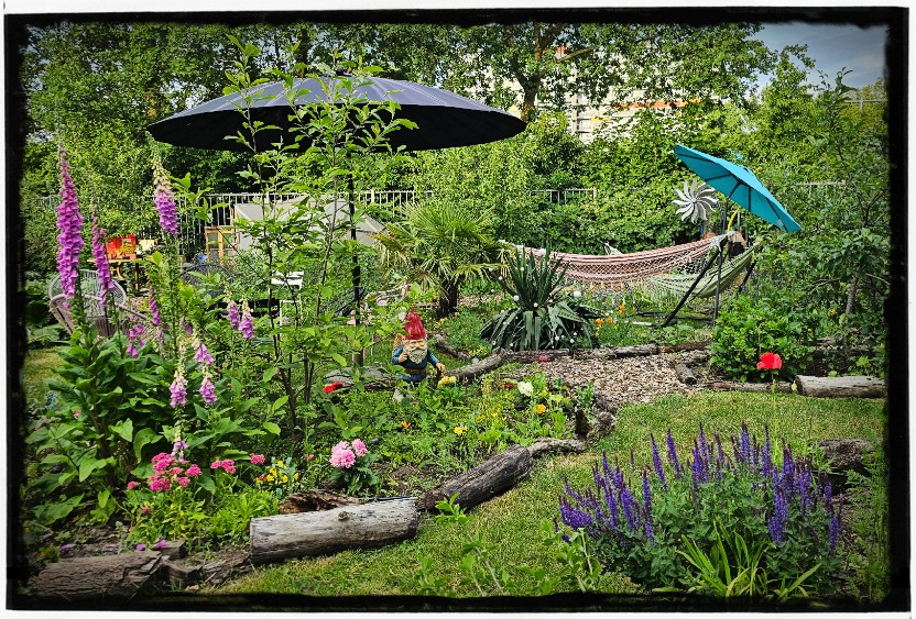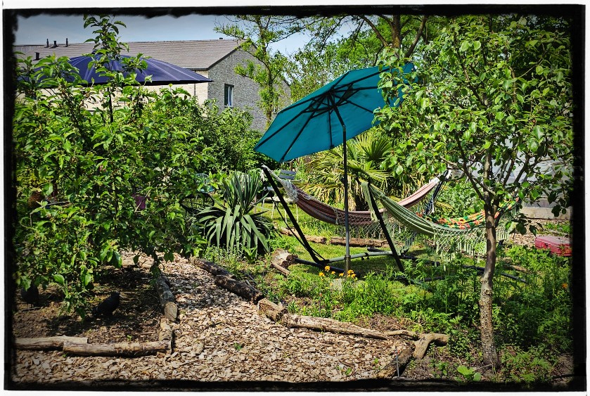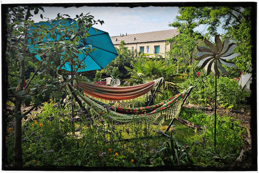 Het is natuurlijk nog steeds wel genieten met dit mooie weer!!! Dus tussen het sproeien door maar lekker in de hangmat hangen en m’n tuin fotograferen.
