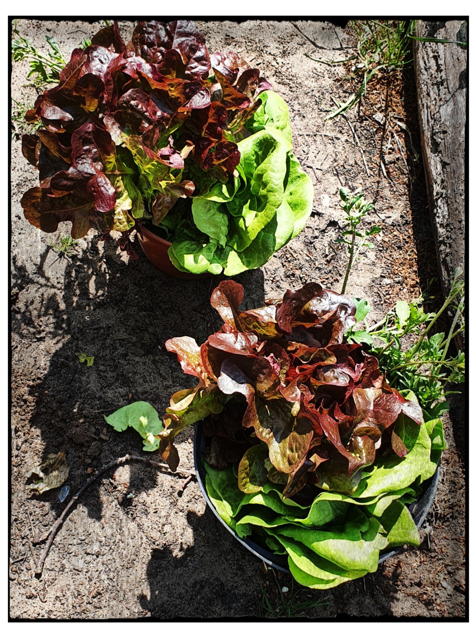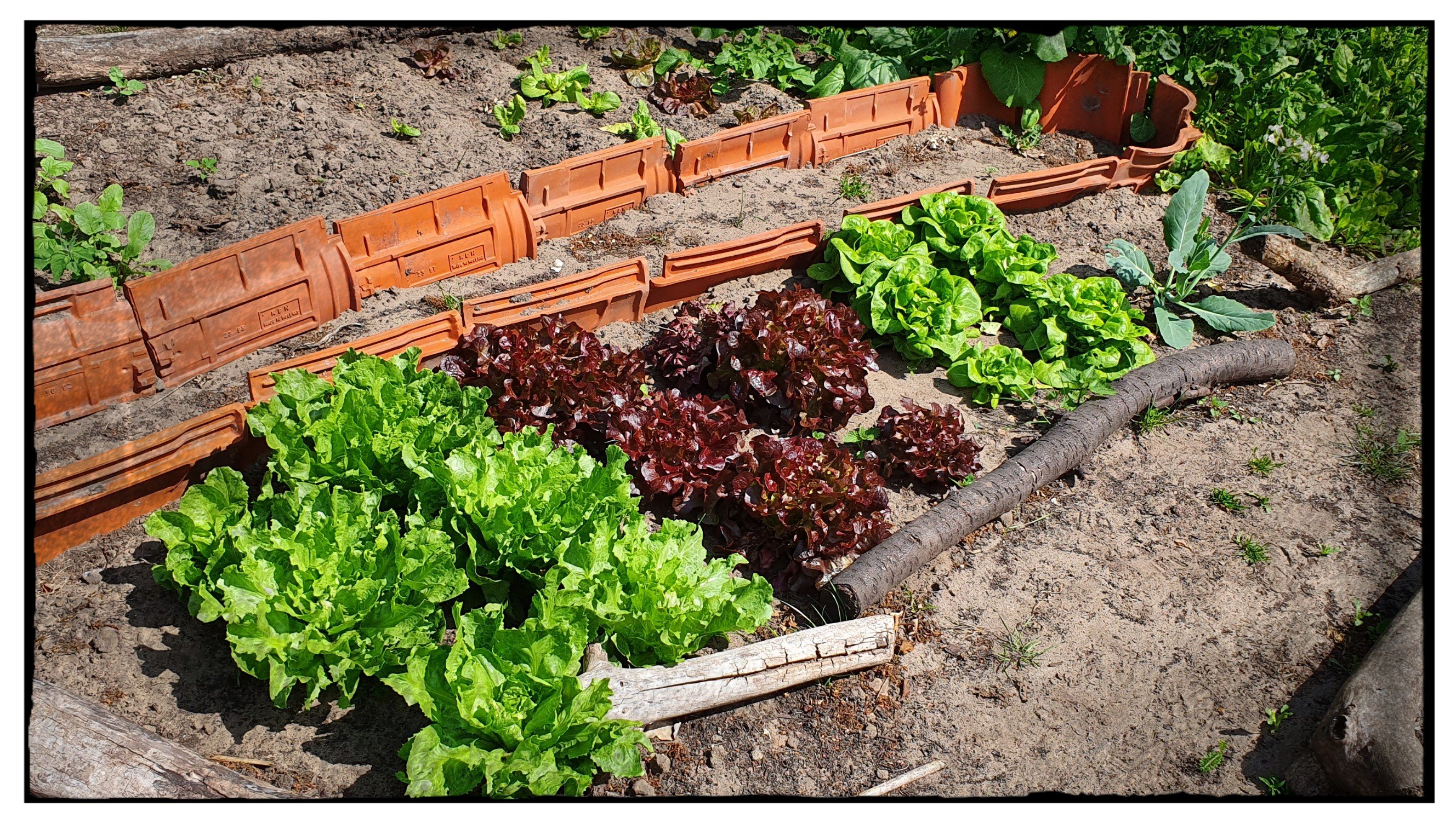 De bloemknopjes van de boerenkool kun je roerbakken als bimi en heb een heerlijke salade gemaakt met allerlei sla en plantjes die overal spontaan de grond uit komen (melde, mosterd, raapstelen)