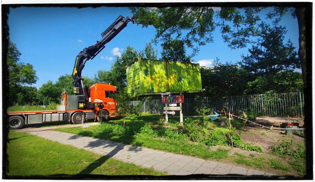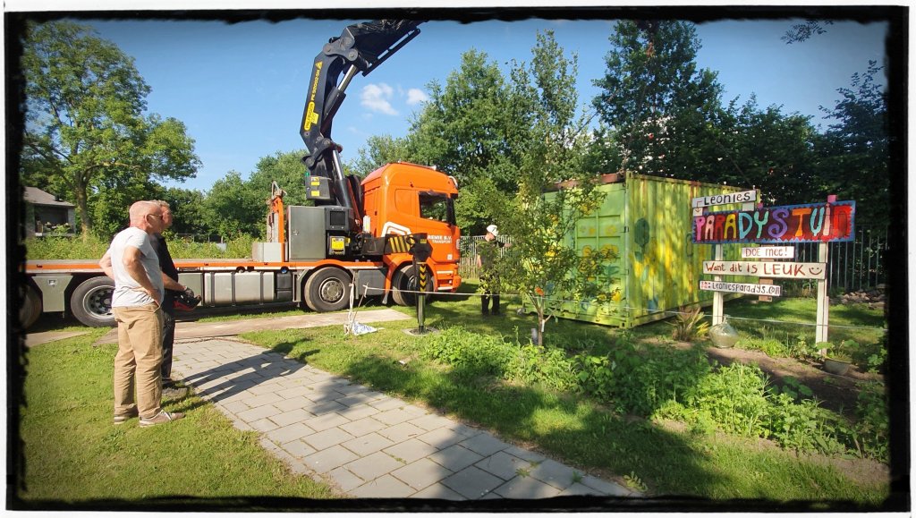 Oooo het was vandaag zo’n spannende dag!! Mn container is verhuist van de oude naar de nieuwe plek!! En dat ging niet vanzelf….het was heel spannend!!